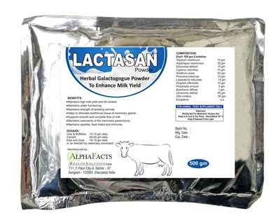 LACTASAN herbal cattle feed supplement composition helps in improving productivity and milk quality with improved bioavailability. It is a multipurpose feed mix that helps in improving milk quality, enhances milk yield, & support metabolic events.